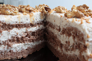 Aici e un pic mai complicata treaba, in sensul ca vorbim de mai multe operatii si asamblari pana ce tarta e buna de mancat...dar merita.